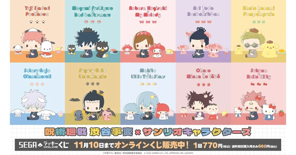 セガ ラッキーくじオンライン「呪術廻戦 渋谷事変×サンリオキャラクターズ」が、2025年10月10日(金)11:00より販売開始された。 セガ ラッキーくじオンライン「呪術廻… -