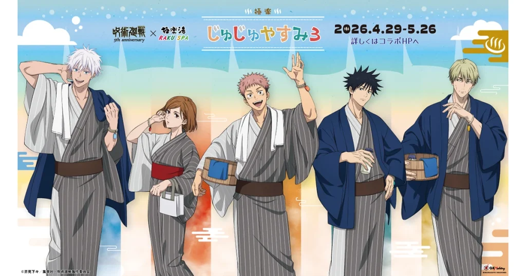 2026年4月29日(水・祝)より極楽湯・RAKU SPAグループ18店舗で、アニメ『呪術廻戦』5周年を記念した第3弾コラボキャンペーン「極楽じゅじゅやすみ3」が開催される。 アニ… -