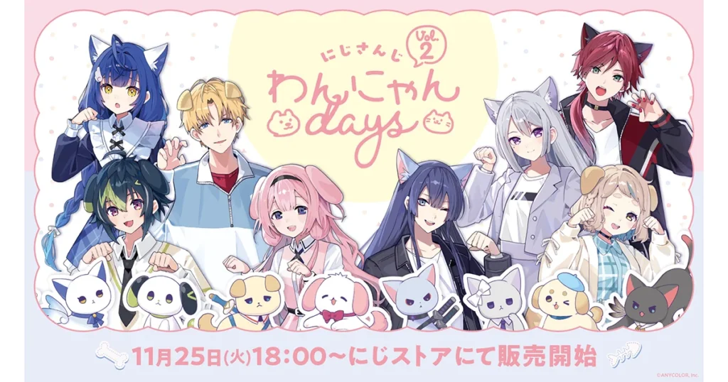 VTuber / バーチャルライバーグループ「にじさんじ」は「にじさんじわんにゃんdays vol.2」グッズを、2025年11月25日(火)18時から販売開始する。 「にじさんじわんにゃ...ニュース -