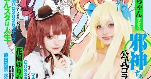 今号の表紙&巻頭グラビアには、コスプレイヤー・すずら(@suzuran_ro)が邪神ちゃん、月海つくね(@XaiabP)が花園ゆりねに扮して登場!