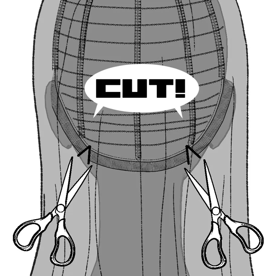 キツいウィッグを緩くしたい時は、少々乱暴だが内側の土台のフチを何ヶ所か切ってしまおう。