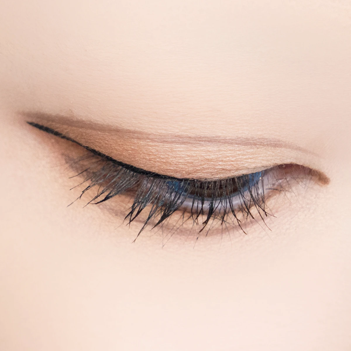 ⑤上アイラインは黒目上から目尻に向かってまっすぐ引きつつ、なめらかに下げてタレ目に。