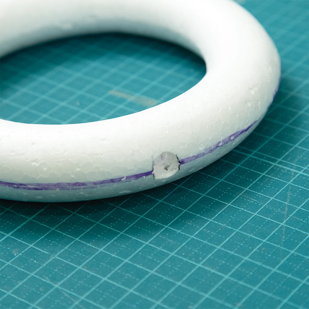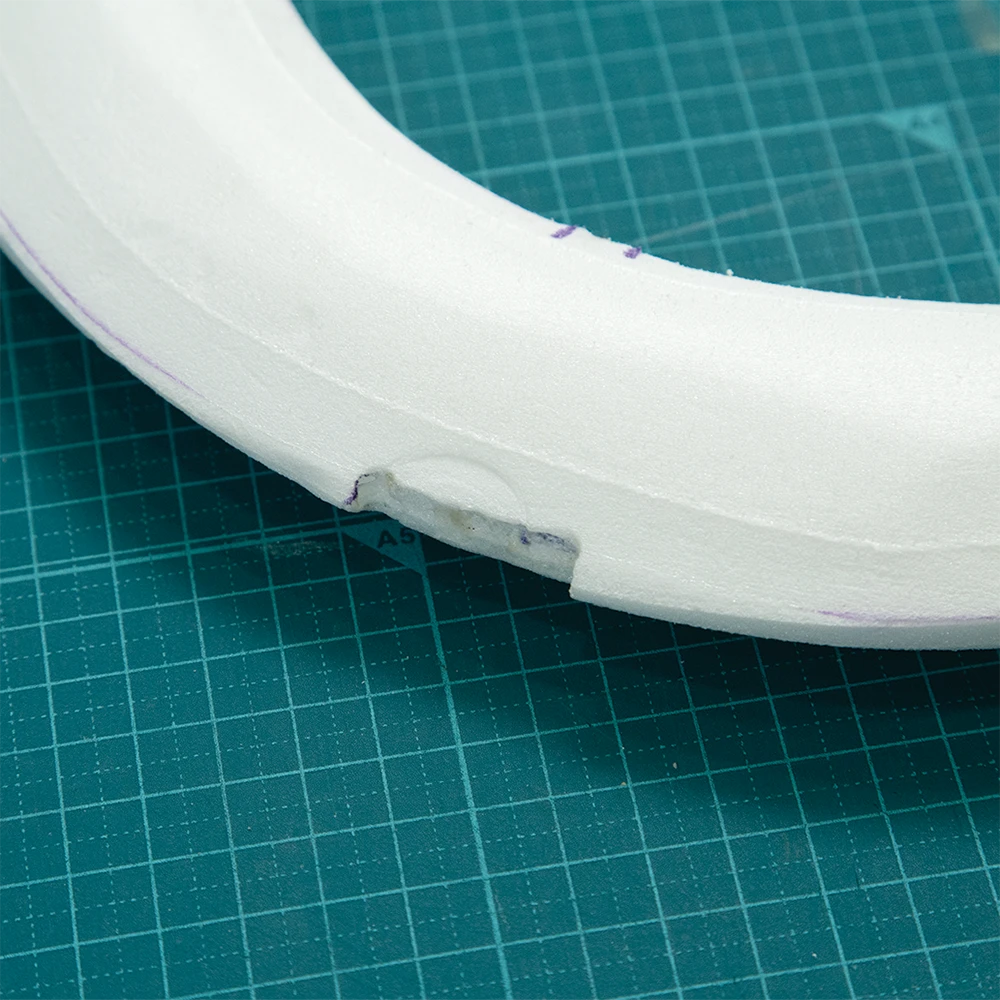 3. ①のマーキングした箇所とリース型にはんだごてで溝を作る