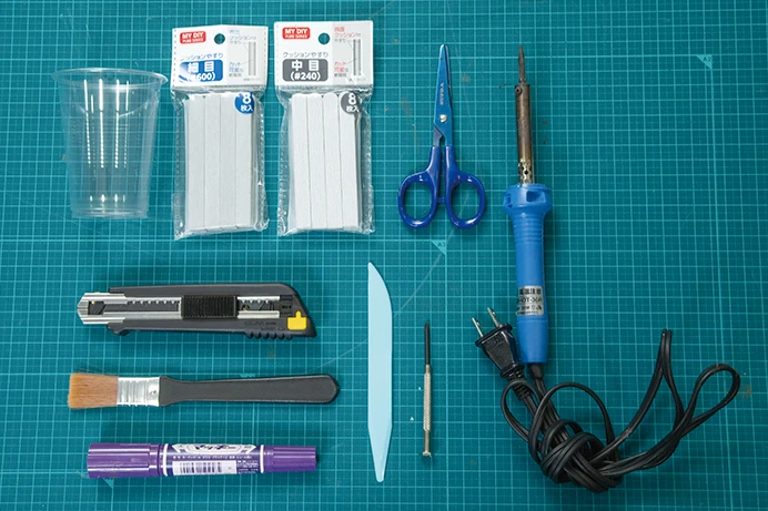 カッターやはんだごて、スプレー等を使用するので、怪我に気をつけて換気しながら作業を行おう。
