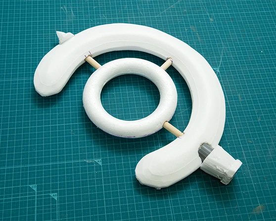 樹脂粘土で[4]で接着したパーツの隙間や凹凸を埋めて滑らかにする。