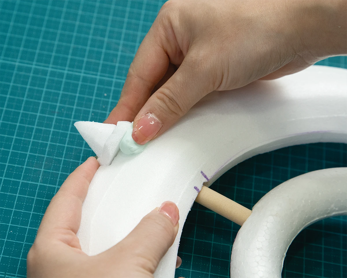 2. GP クリヤーボンドでリボンとパーツを繋げる