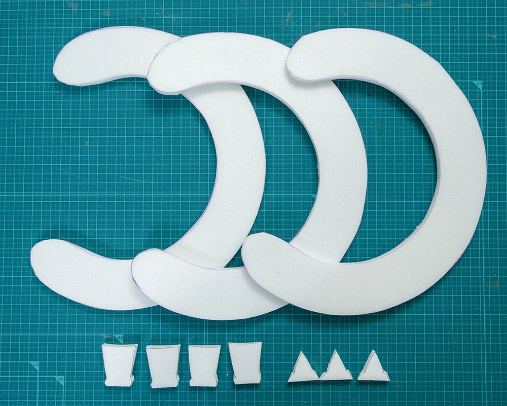3. ②③のパーツもカッターで角を削ぎ落とし、丸くする