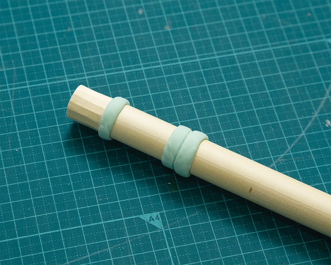 リボンの巻き始めと巻き終わりは、GP クリヤーボンドで接着しよう。