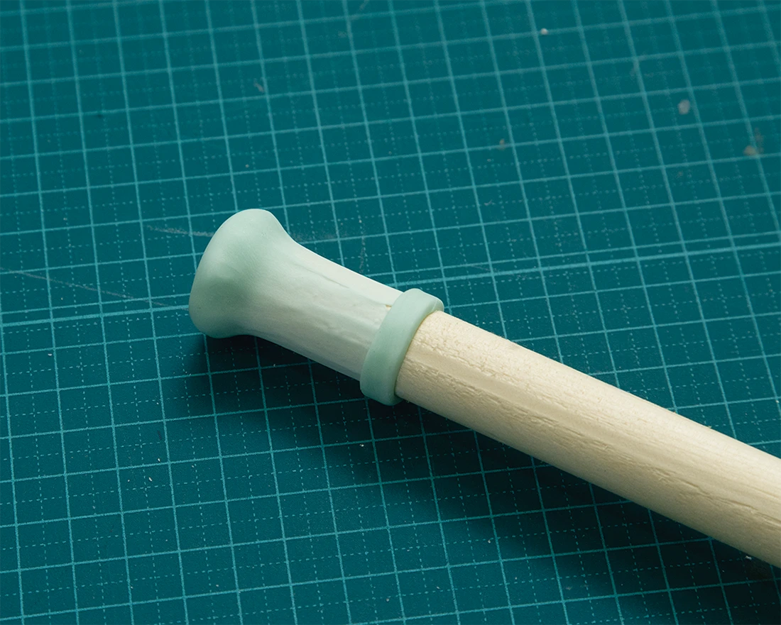 2. 太い方(18φ)の木の棒を、ジョイントパーツにはまるように削る