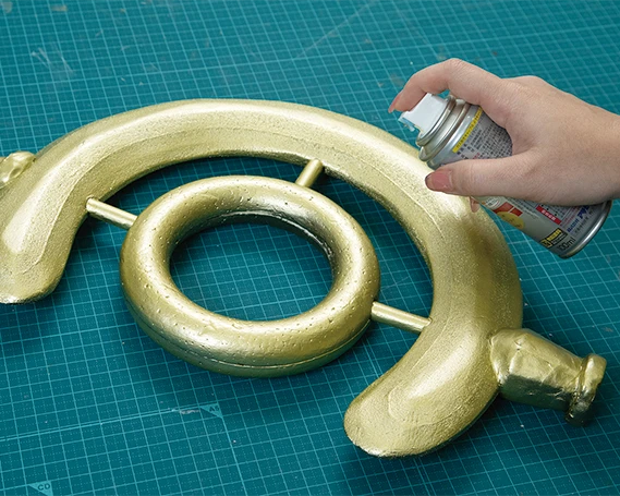 下地を塗った部分を、水性スプレーで金色に塗装する。