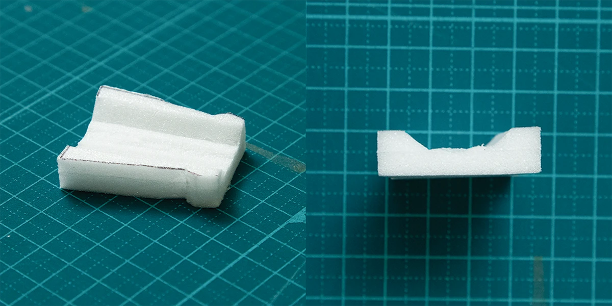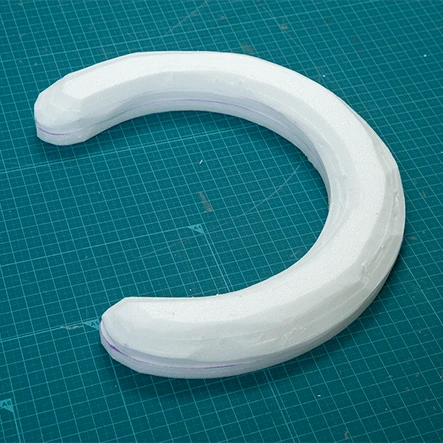 2. ①のパーツの角をカッターで削ぎ落とし、丸くする