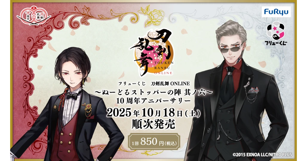 ゲーム「刀剣乱舞ONLINE」のくじ『フリューくじ 刀剣乱舞ONLINE ~ぬーどるストッパーの陣 其ノ六~ 10周年アニバーサリー』が、2025年10月18日(土)よりファミリーマート、ローソン、ミニストップ、ホビーショップ、書店、刀剣乱舞万屋本舗 池袋本店/京都アバンティ支店/大丸東京支店などにて順次発売される。