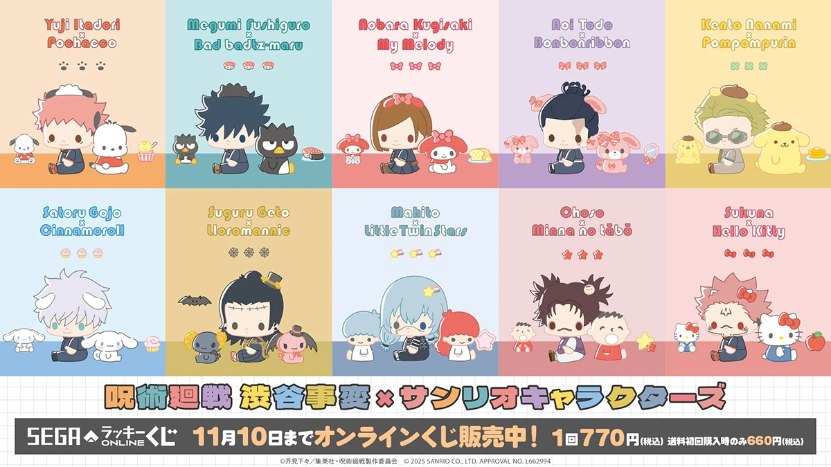 セガ ラッキーくじオンライン「呪術廻戦 渋谷事変×サンリオキャラクターズ」が、2025年10月10日(金)11:00より販売開始された。