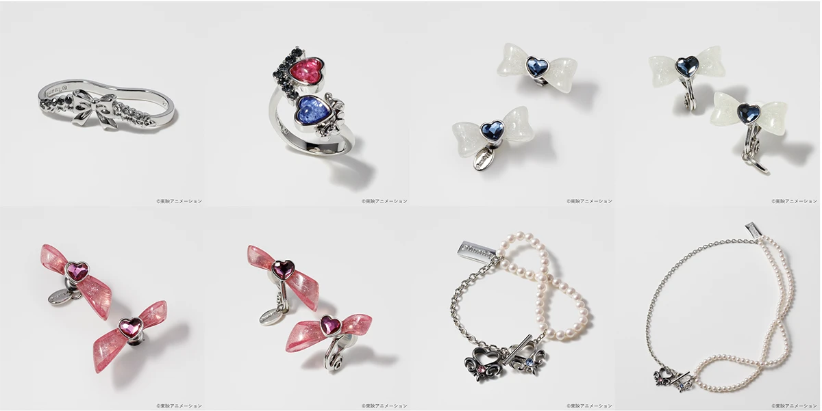 ラインナップはリング2種、ピアス2種、イヤリング2種、ブレスレット、ネックレスの全8アイテム。