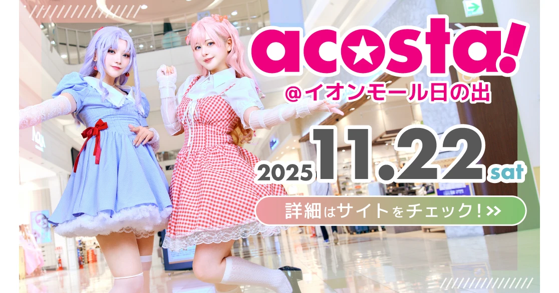 コスプレイベント「acosta!@イオンモール日の出」が、2025年11月22日(土)にイオンモール日の出にて開催されることが決定した