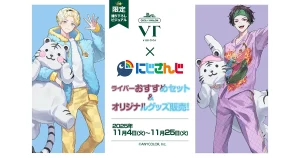 2025年11月4日(火)19時頃より、緋八マナと佐伯イッテツがVTの人気アイテムやおすすめセットの魅力を紹介するコラボ記念配信が実施予定だ。