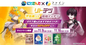 VTuberグループ「にじさんじ」所属の宇佐美リト、佐伯イッテツとプロテインシリーズ「ファインプロテインダイエット」のコラボ企画「#にじファイン」が、2025年11月9日(日)より実施される。