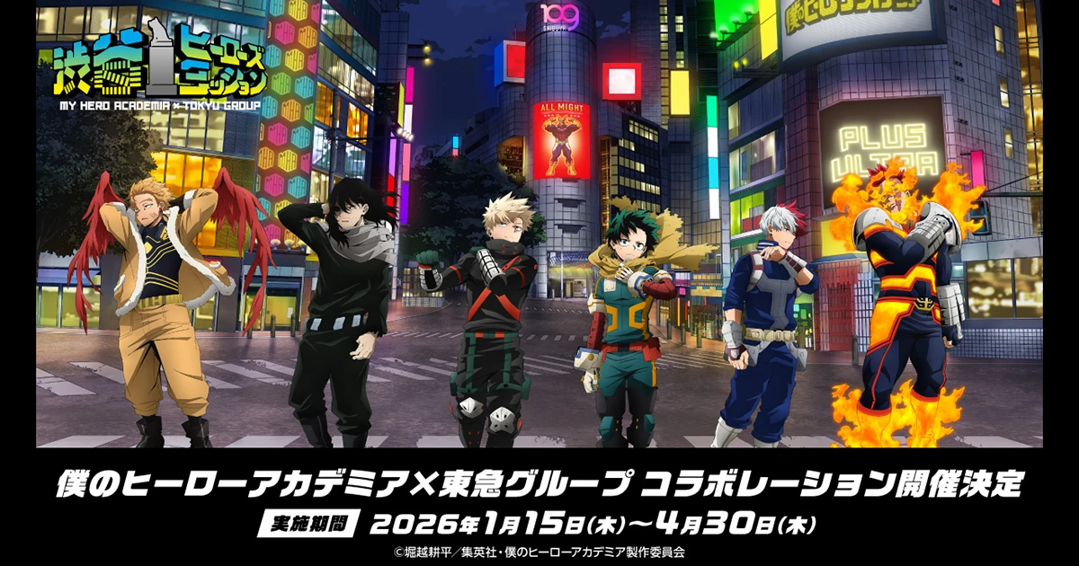 アニメ『僕のヒーローアカデミア』と東急グループの大規模コラボレーション企画が、渋谷のまちを中心に2026年1月より順次開催される。