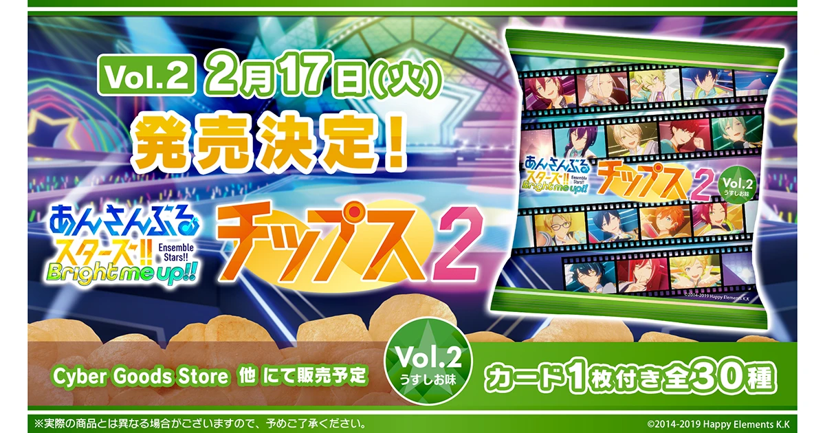 オリジナルカード付き『あんさんぶるスターズ!!チップス2 Vol.2 うすしお味』が2月17日発売!