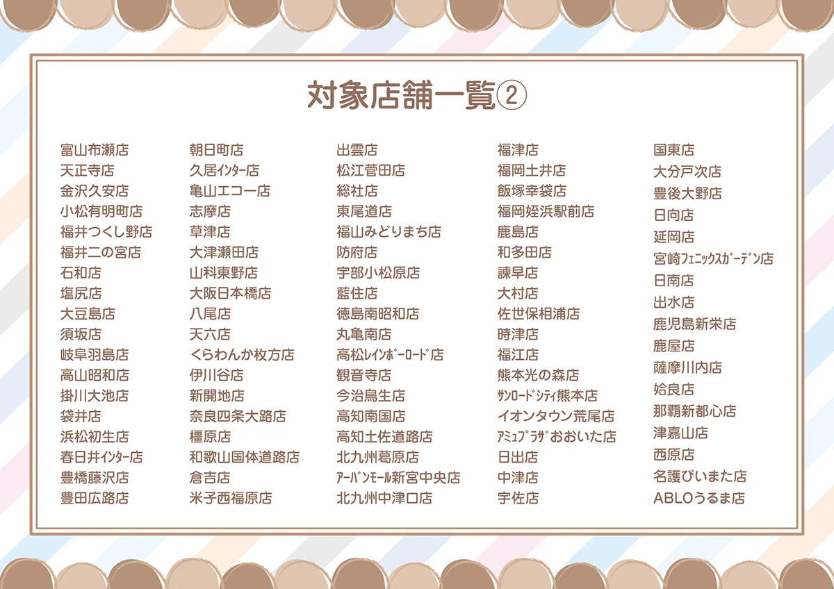 対象商品のお買い上げ2,200円(税込)ごとに1枚。