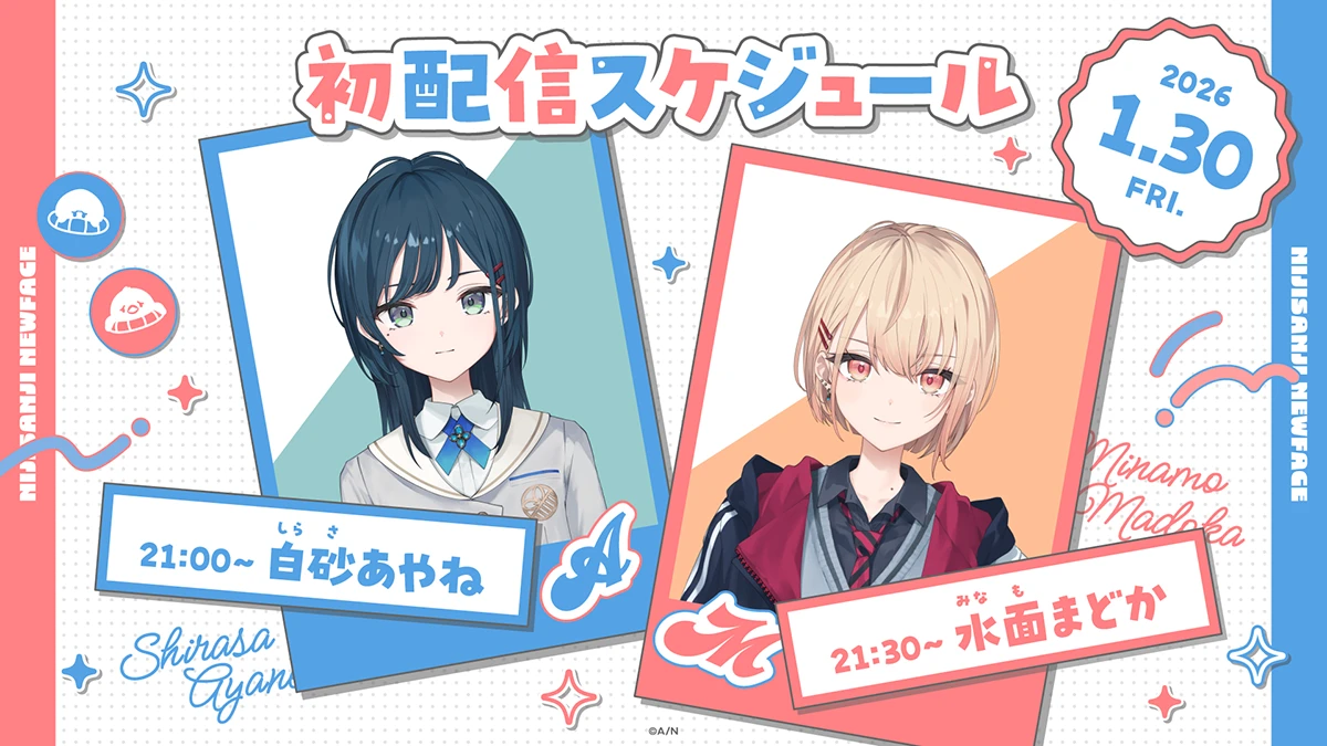 VTuber / バーチャルライバーグループ「にじさんじ」から、新たに2名のライバー「白砂あやね」「水面まどか」がデビューする。