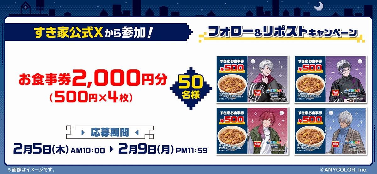 牛丼チェーン店「すき家」は、VTuberグループ「にじさんじ」の“せめ4”とのコラボキャンペーン「せめ4と一緒にすき家なんじゃない?」を、2026年2月5日(木)9時より開催する。