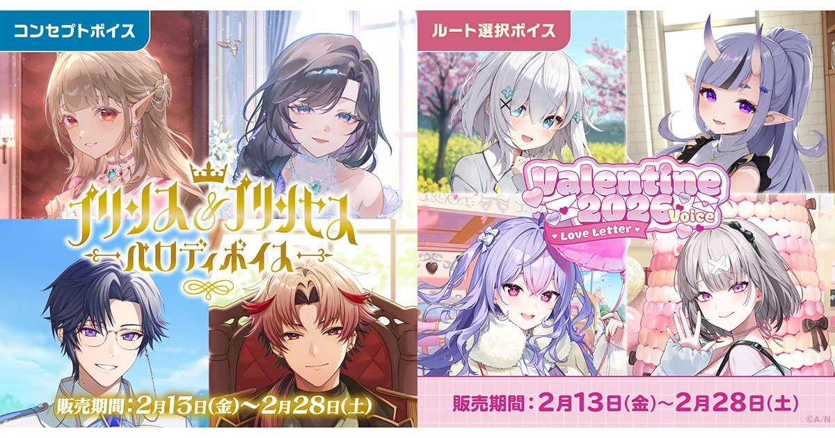 VTuber/バーチャルライバーグループ「にじさんじ」「NIJISANJI EN」は、「にじさんじ プリンス&プリンセスパロディボイス」「にじさんじ バレンタイン2026ボイス~Love Letter~」を2026年2月13日(金)12時から販売開始する。