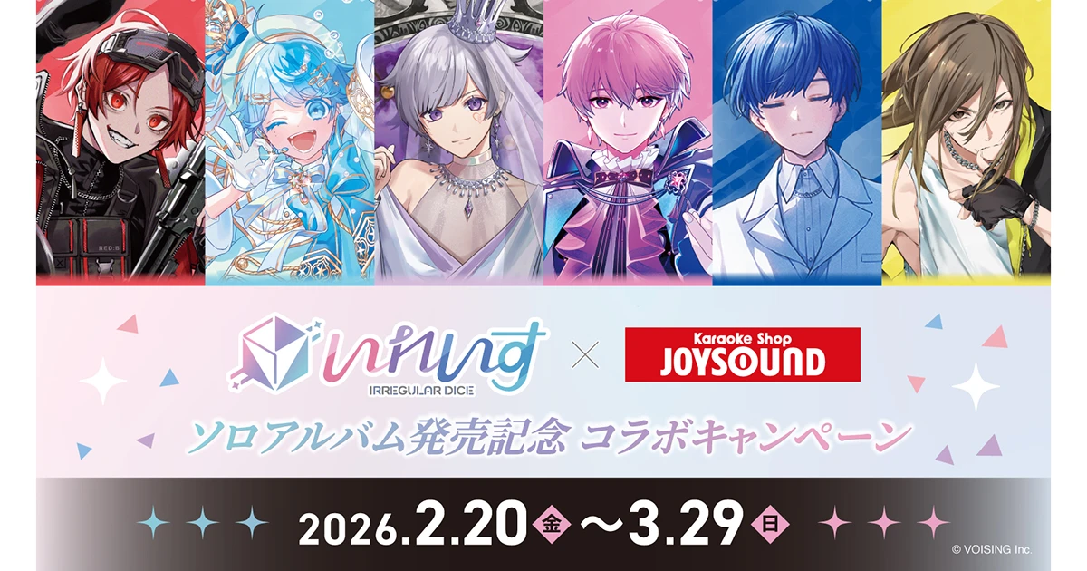 「VOISING」所属の2.5次元アイドルグループ「いれいす」と「JOYSOUND」のコラボレーションイベントが、2026年2月20日(金)より開催されることが決定した。
