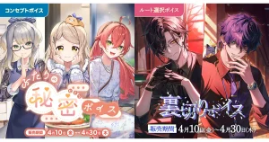 VTuber/バーチャルライバーグループ「にじさんじ」「NIJISANJI EN」は、新たなコンセプトボイス「にじさんじ ふたりの秘密ボイス」「にじさんじ 裏切りボイス」を2026年4月10日(金)12時から販売開始する。