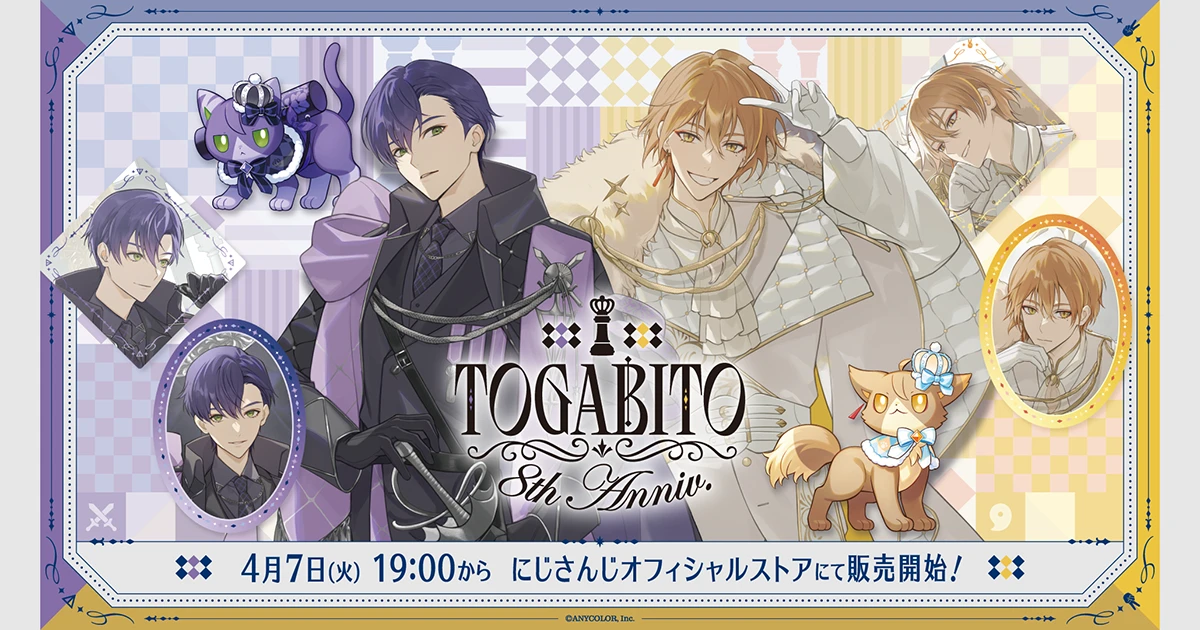 VTuber / バーチャルライバーグループ「にじさんじ」は、2026年4月7日(火)19時よりにじさんじオフィシャルストアにて「TOGABITO 8th Anniv.」グッズの販売を開始する。