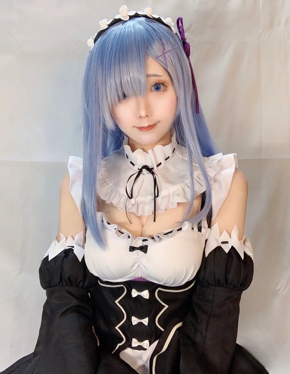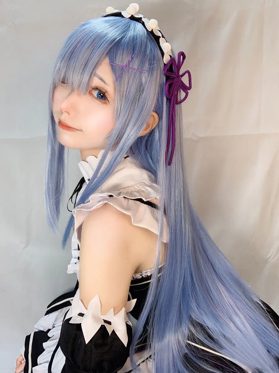 ▼通常のレム衣装の写真。髪の長いレムとのメイクの違いなどに注目。