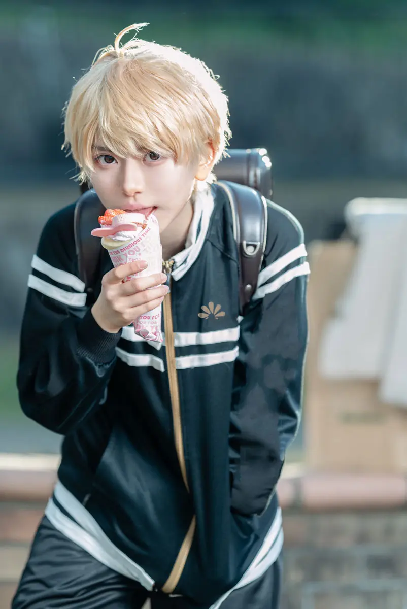 先日開催されたアコスタ寝屋川公園での撮影。フォトグラファーはrinrin博士さん(@rinrinhakase)。千葉さんが表現する佐野万次郎のコスプレは、二次元のキャラなのに三次元に自然に溶け込んでいる。クレープも自動販売機でのしぐさも、「マイキーならこうするだろうな」という誰しもが納得する写真になっているのだ。