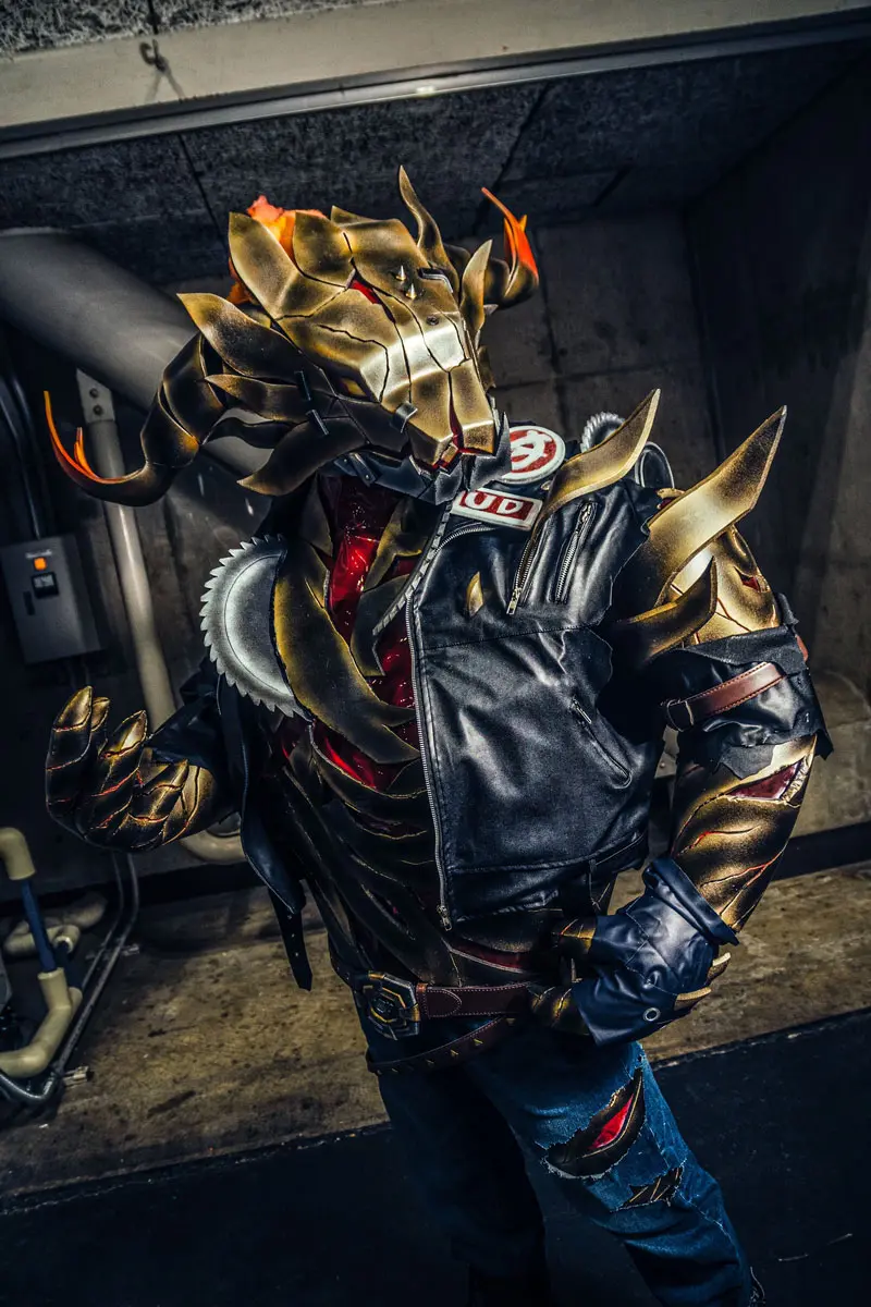 ベインの衣装「熔鉄の猟犬」のコスプレ。インテックス大阪で行われた「COMIC CITY 大阪」での撮影。「実際お見かけしたけどめちゃくちゃリアルだったしめちゃくちゃかっこよかった!!!!!!小学生みたいにかっけー!!!って叫んだ」と会場にいたフォロワーからの声も。