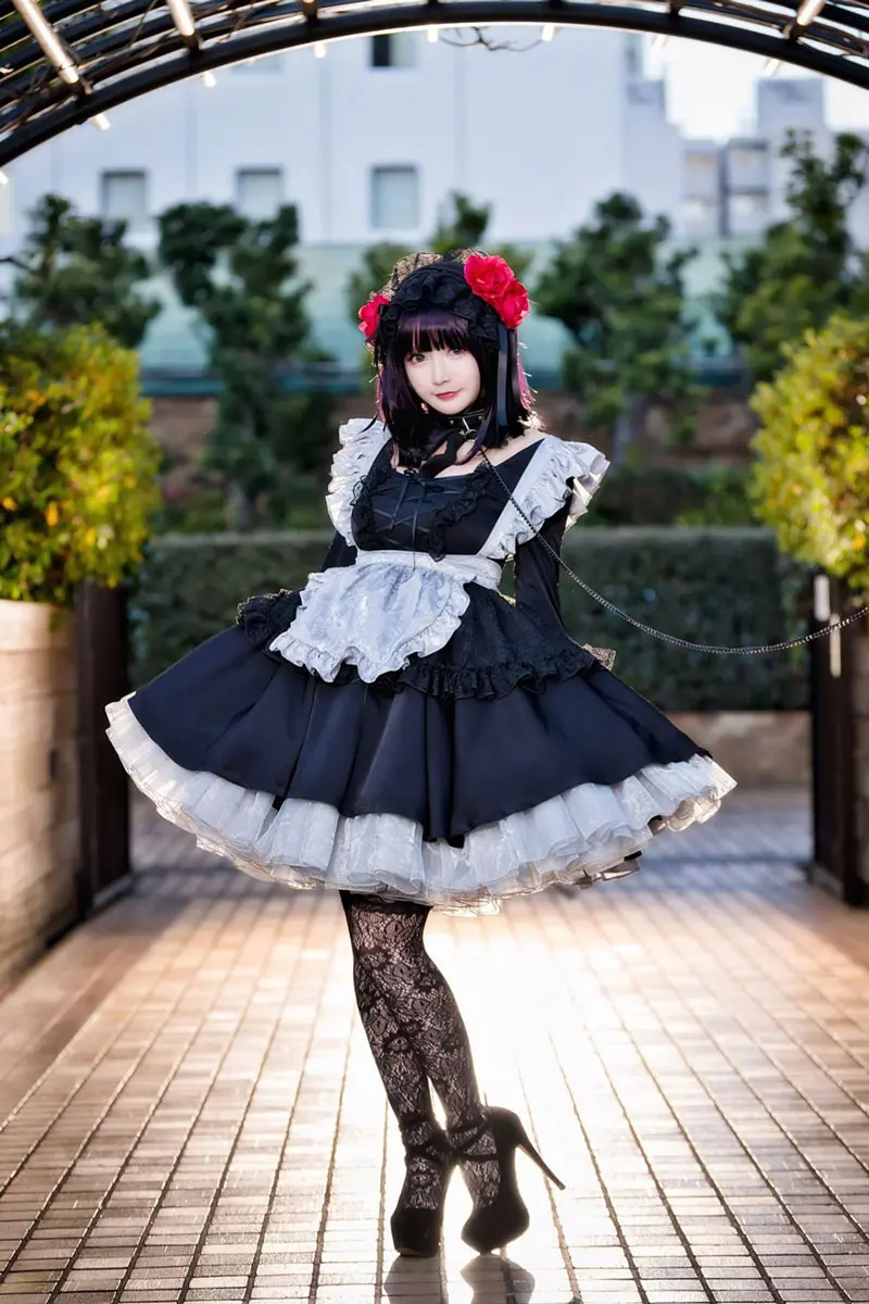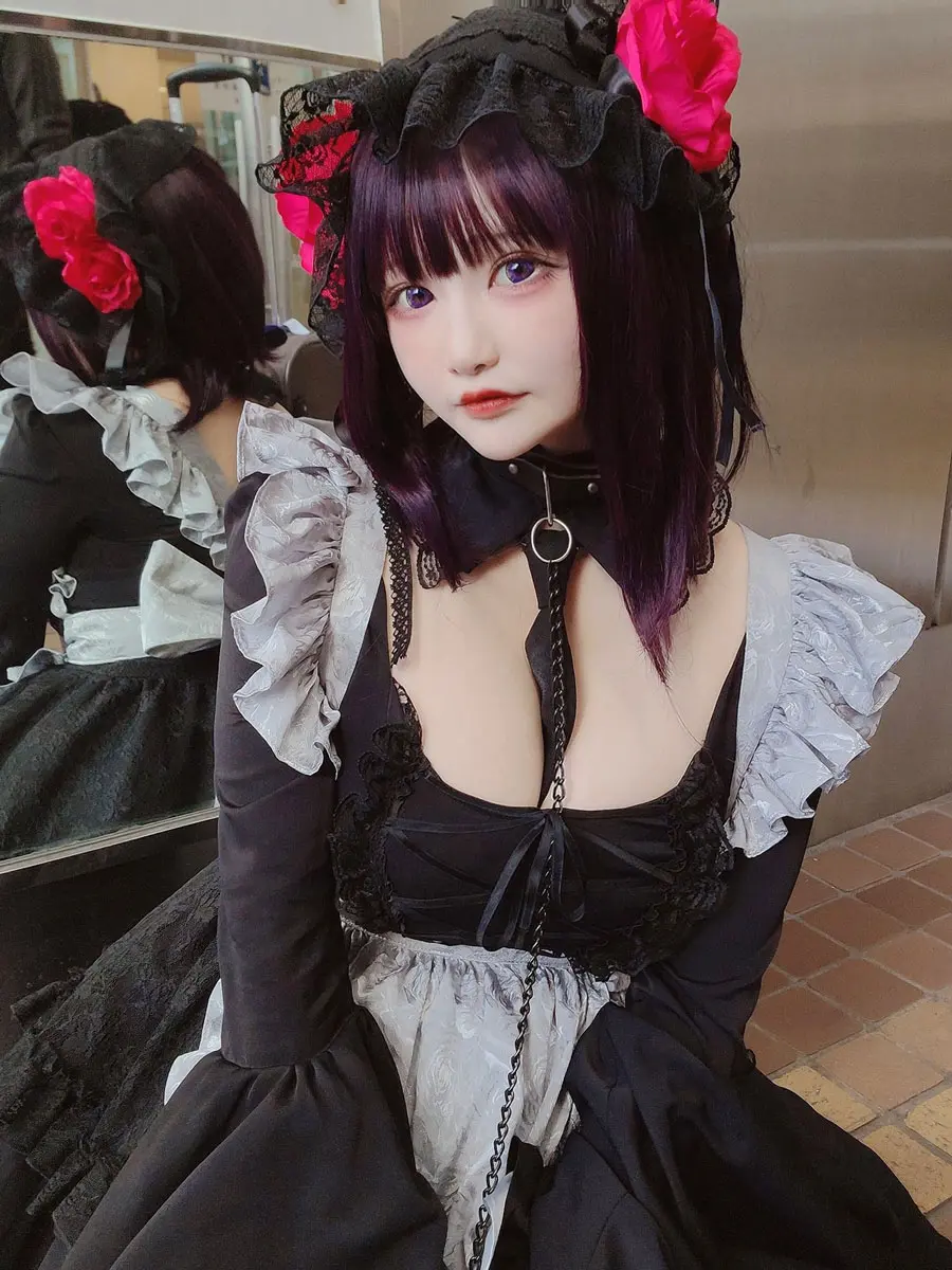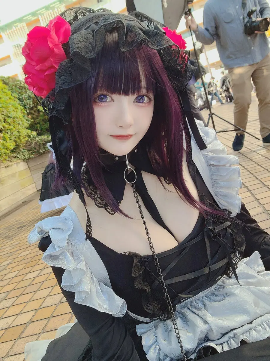 ヤングガンガンで連載中、アニメも絶賛放映中のコスプレを題材にした青春ラブコメ『その着せ替え人形は恋をする』に登場する美少女ゲーム『聖♡ヌルヌル女学園 お嬢様は恥辱倶楽部ハレンチミラクルライフ2』黒江雫のコスプレをする喜多川海夢のコスプレ。