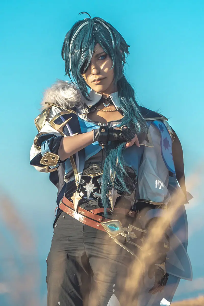 男装にならない程度に凛々しく撮影中も口角を上げすぎないように気をつけていました。原神は女の子達の睫毛が特徴的なのでつけまつげ切り貼りしてカスタムして使ってます。