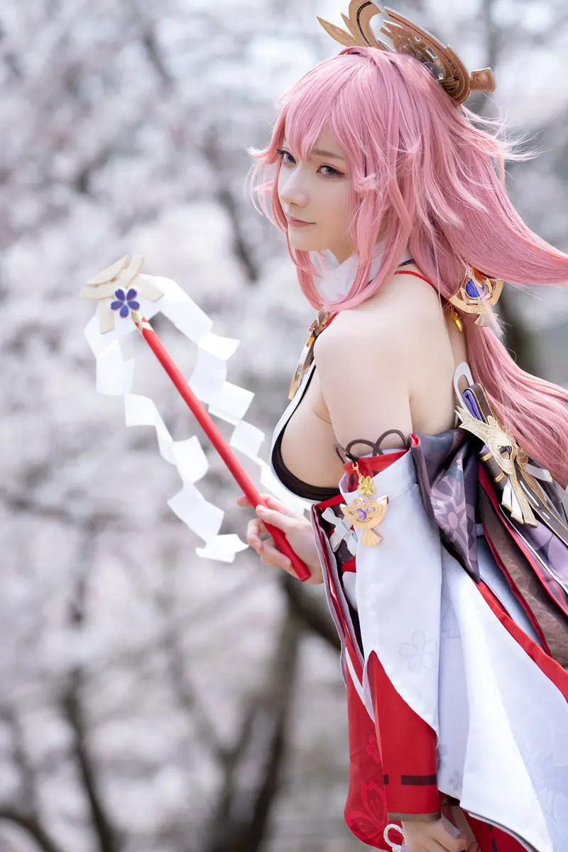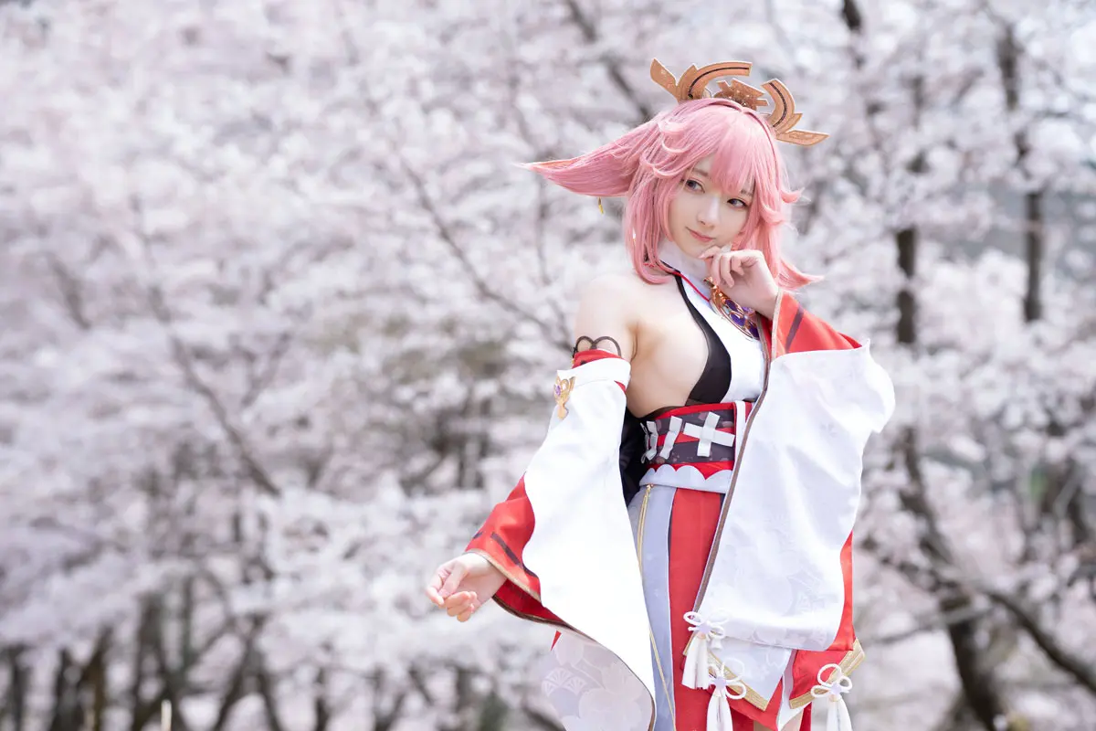 コスプレイヤーの尊みを感じて桜井さん(@angelia_lapin)が『原神』八重神子のコスプレ写真を公開。