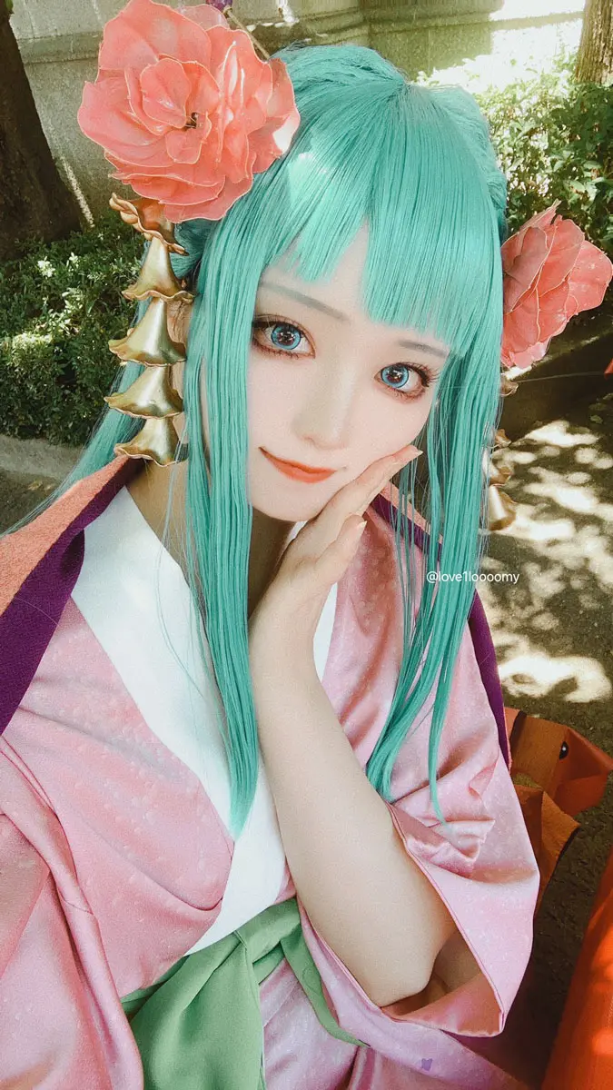 自作衣装と髪飾りを身にまとったるーみさんの見事な表現力にフォロワーからも「垂れ目具合もすごい良いです」「目のこう膨らみながら垂れるあの独特の美しいラインなどなど各所再現されててもう美しや」と絶賛のコメントでリプ欄が埋め尽くされている。
