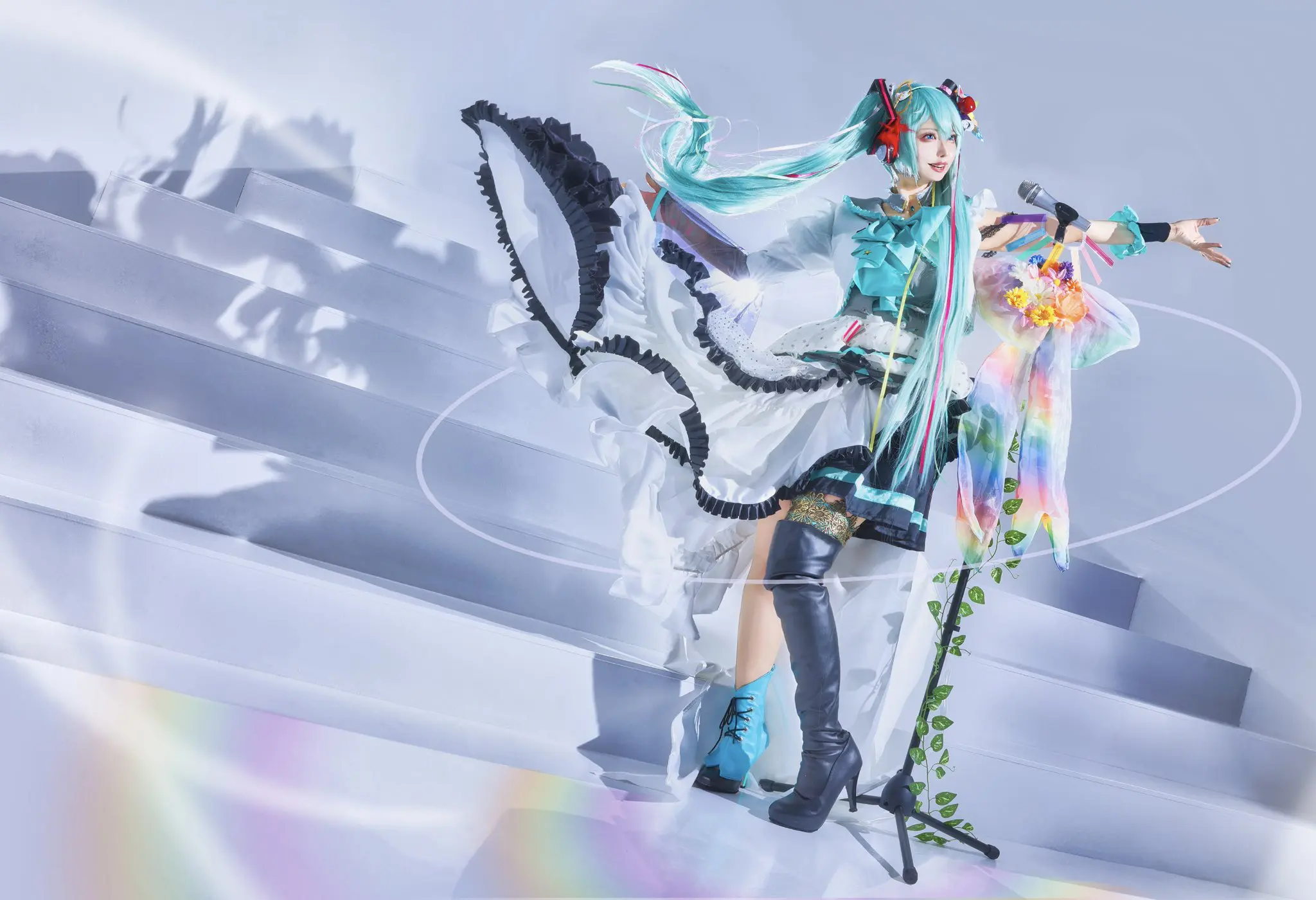 撮影当日、私は初音ミクの15周年を祝うため、撮影してくださったカメラマンのまっちーさんは、コスナビLegacy展に出す写真を残すため。目標がしっかりあったため、お互い妥協はせず満足のいくまで撮影をしました。