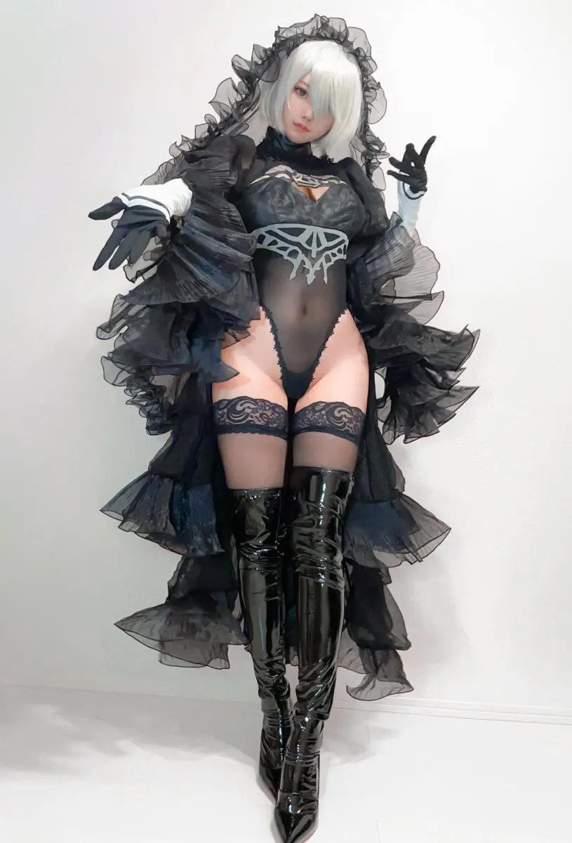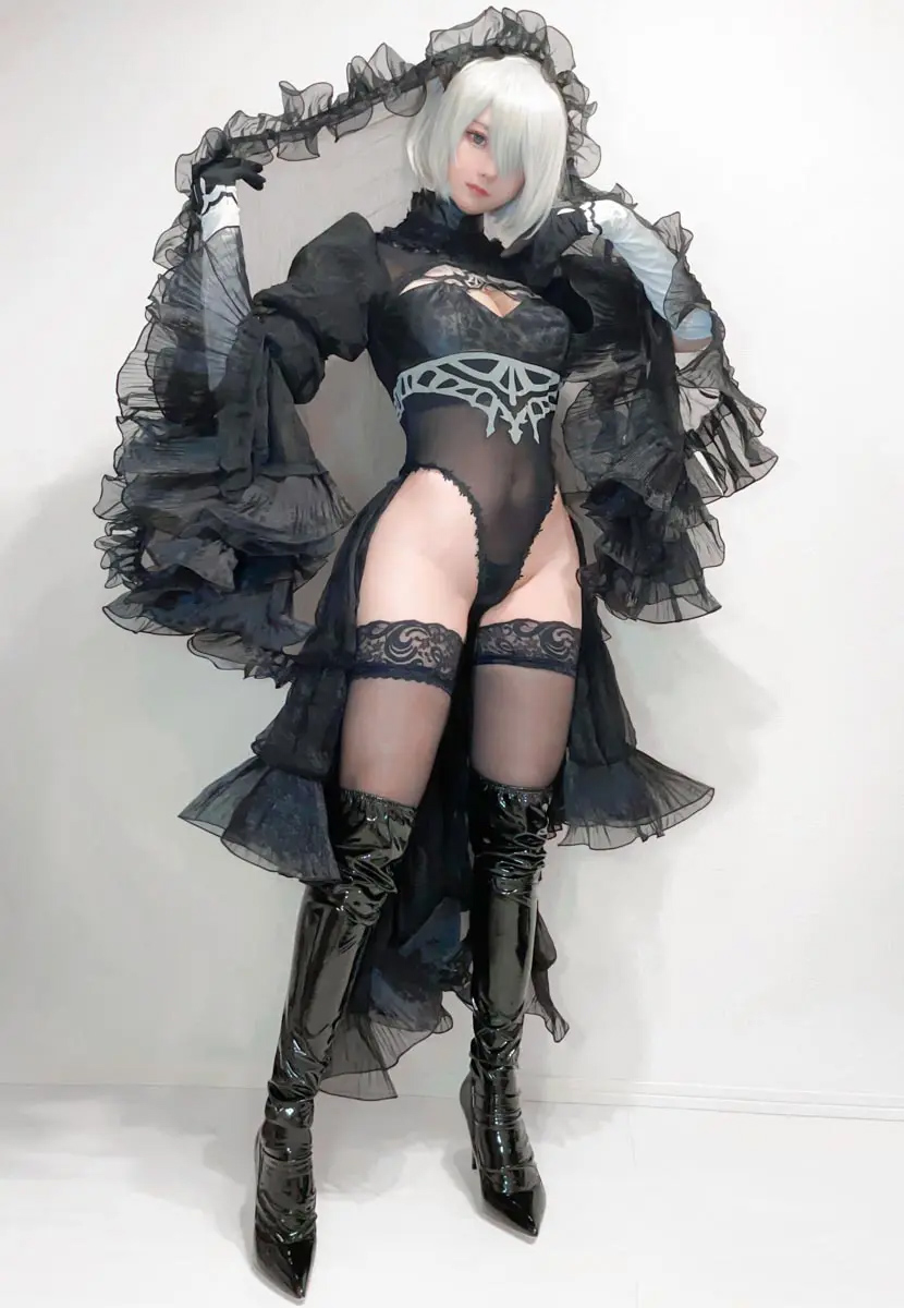 コスプレイヤー毎眠かのん『ニーア オートマタ』2B、並行アイラインで表す次元を超えるフィギュア感