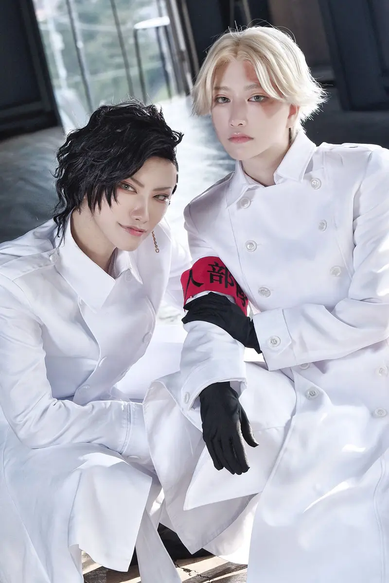 男装で人気のコスプレイヤーこるさん(@spiral_col)と小鳥みやびさん(@toritori_miyabi)が、『東京卍リベンジャーズ』九井一と乾青宗のコスプレを撮影。