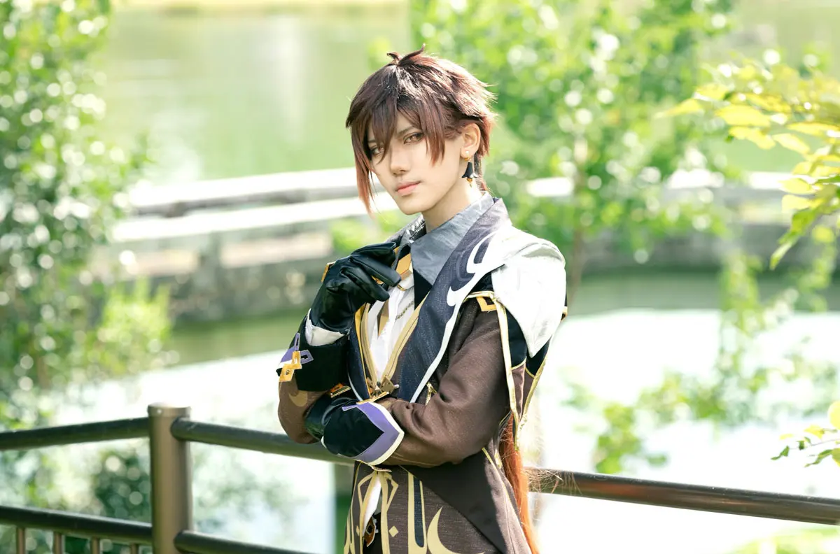 コスプレイヤーだるまさん(@pupupopo999)が『原神』鍾離のコスプレ写真をTwitterに投稿した。