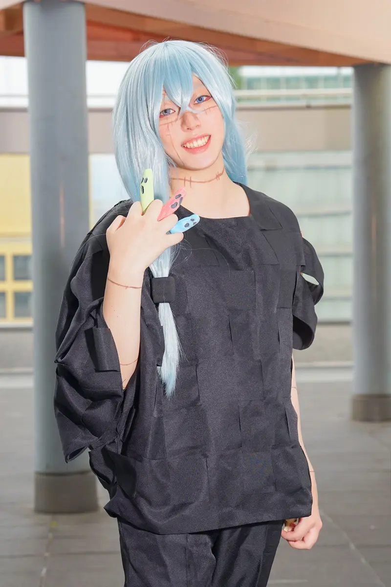 裸眼でのコスプレは初めてだったので、違和感が出ないツリ目メイクを心がけました。暴れまわる髪の毛を結うのが一番疲れました
