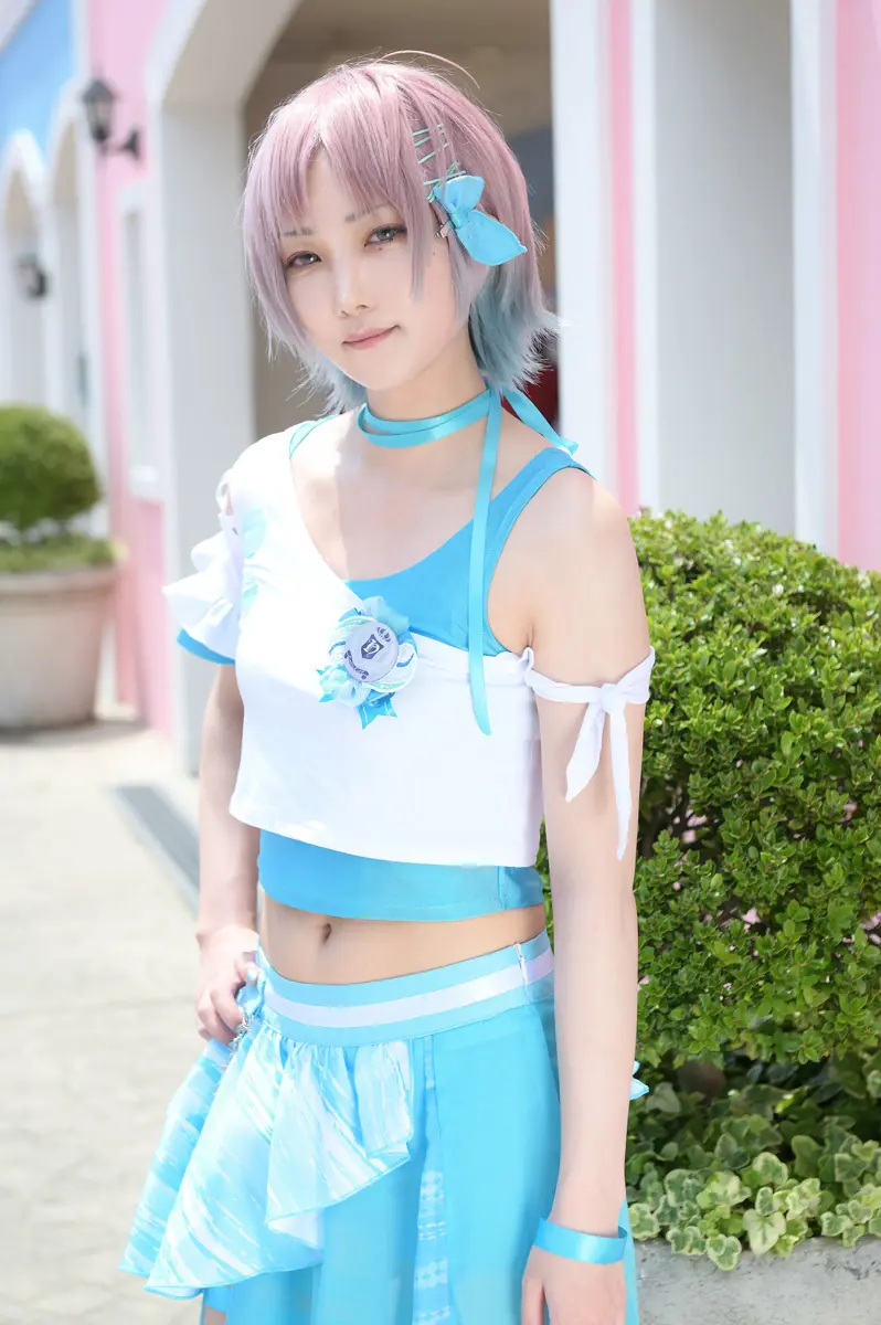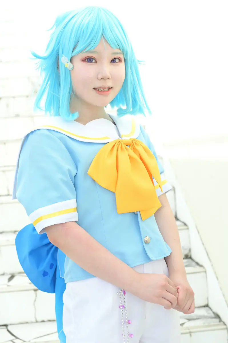 キャラに合ったメイクで透明感を出せるようにしました。ウィッグのグラデーションは自分で染めてみました。