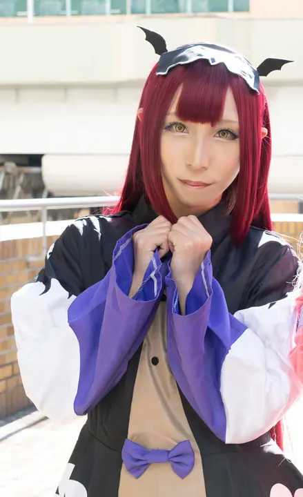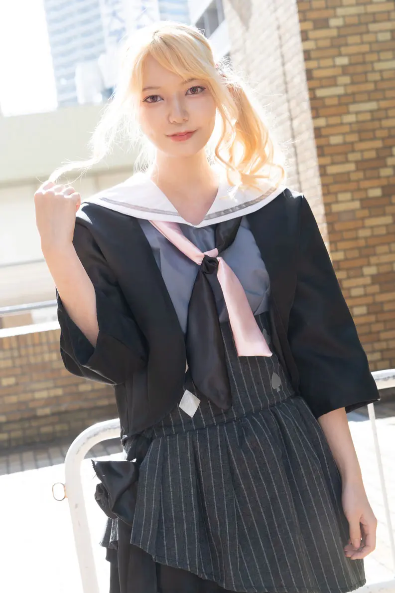 衣装はayarnで購入。メイクはキャラに寄せられように目尻長めのつけまつげにしました。